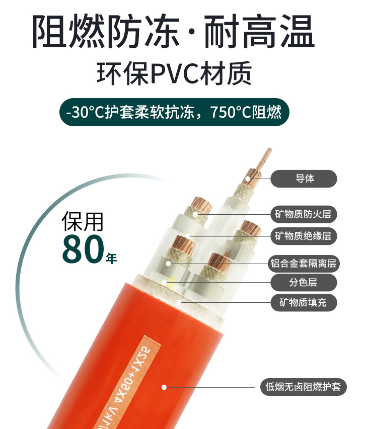 電纜萬(wàn)一失火,能夠把燃燒限制在局部范圍內(nèi),不產(chǎn)生蔓延,保住其他的各種設(shè)備,避免造成更大的損失。